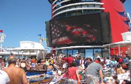mid-ship is the Goofy's pool, which is family oriented and has the big screen t.v.