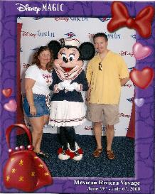 pictures with Minnie Mouse as she welcomed us aboard! (My husband's thoughts: 'gee