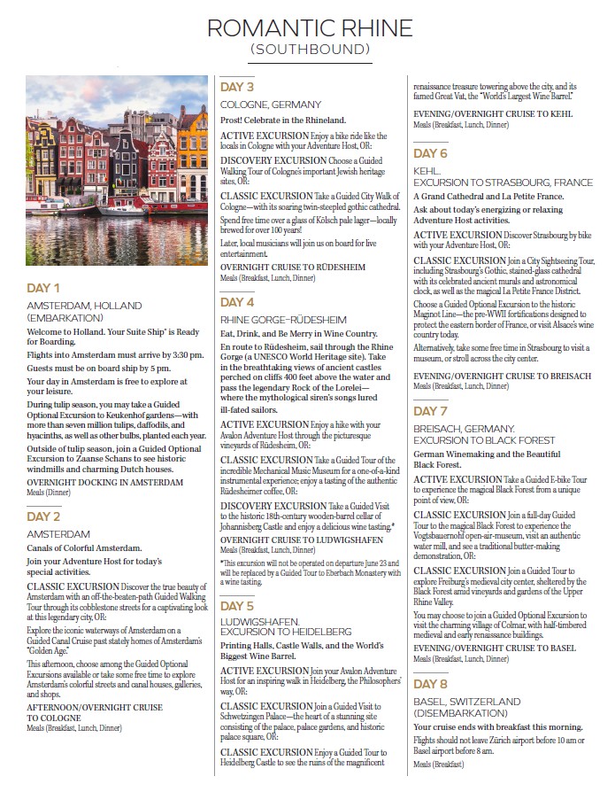 Please join Joelyne & Barbara Byers as they escort a group of family, friends and neighbors from Regency at Caramella Ranch sailing the Romantic Rhine River on Avalon Waterways!