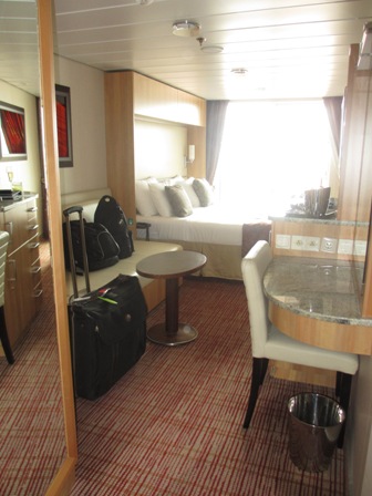 Solstice is a beautiful ship and very easy to navigate. I've been on several ships over the years (this one was cruise #27) and there have been many where you try to get from point A to B and have to go through D-E-F to get there. So this ship has very good flow. Once we finished up with lunch, we brought our bags to our cabin (they had not announced that the cabins were ready yet) but our cabin steward was fine letting us put our bags in there. Leave it to the Travel Professionals to break the rules. But then we were hands free and able to walk freely around the ship and investigate all that it has to offer. This ship is very tastefully decorated, very classy and beautiful. I took close to 200 pictures which you are welcome to view HERE.