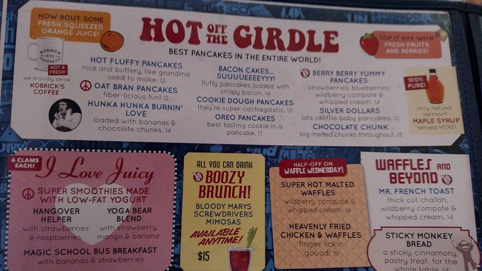 Our next day was "sleep in day" since we've been going, going, going since this trip started- we all needed to re-charge a bit. Our cousin was coming into town from CT to visit with us, so once she arrived we took off once again walking to brunch. We wanted a place that still served breakfast, but something charming- well we found Big Daddy's Diner and what a great find! Cute, cute place- decorated with lots of retro memorabilia of TV shows, movies, companies, sports teams.