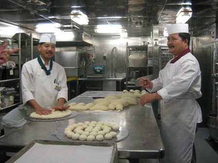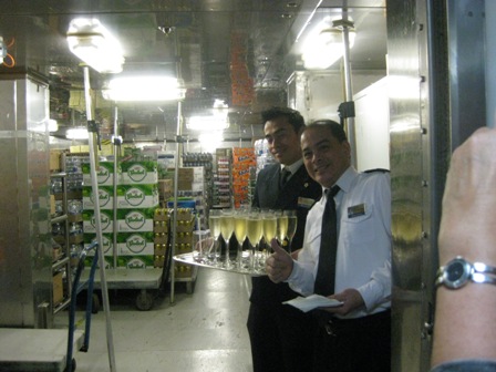 We took a behind the scenes tour of the ship- this was a $250 per person cost experience, but worth every penny. My husband and I did this, it was about 3 hours and you got to go behind the scenes in just about all aspects of the ship. We started by going back stage and saw the dressing rooms, the costume “closet”, make-up rooms, props, etc. We got to tour the Galley and also all the food storage areas. We did get to tour the Bridge and the Engine Control Room; however, the Engine Room was off limits. It was a fascinating tour and we enjoyed it thoroughly. Included in that cost, when the beverage locker was opened for us to see, we were greeted by waiters with trays of champagne in hand. When greeted by the pastry chef, we had some sweet eat samples to choose from and at the end of the tour we were given a cocktail in one of the venues and the opportunity to ask any additional questions and then sent on our way with a goodie bag that included some shot glasses, a cook book, menus signed by the Head Chef and a copy of our group photo with Captain Turner taken on the Bridge. So it really was a great value and an experience that we won’t ever forget.