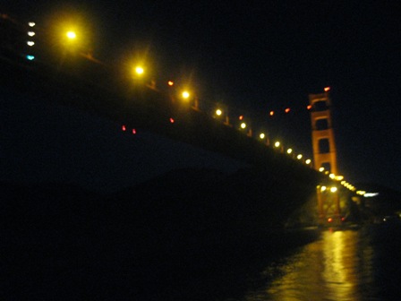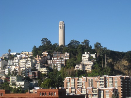Below: I woke up early enough (by accident) to see us sail under the Golden Gate Bridge on disembarkation day! What a great sight in the chilly morning air! Then back to bed to awaken at a real hour and we had a crystal clear day upon arrival in San Francisco- picture of Coit Tower almost looks fake!