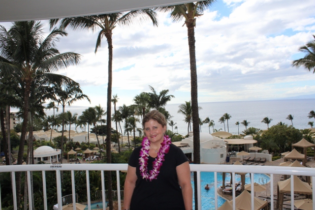 Smooth arrival at the resort and our room was ready for us. I actually had an email when we landed from the hotel saying that our room was ready- relatively early for check-in standards of 3pm. We were warmly greeted with a glass of juice and a fresh flower lei for myself and the masculine beaded lei for Bill. Check-in was a breeze and we were soon escorted up to our room, #422. The Fairmont Kea Lani is an all-suite resort and all face the ocean; however, the lower floors would have more of a resort view. We were on the 4th floor and had a full on Ocean View and it was gorgeous! Very nice size bedroom and attached living room, with doors that close them off and a HUGE bathroom with a large walk in shower, big deep soaking tub, two pedestal sinks and a separate "toilet closet". We were never in each other's way in this bathroom. In fact, we could probably have line danced in this bathroom, truth be told. The Lanai was also HUGE, with entry doors from both the living room and the bedroom, furnished with a round table and 4 chairs and one chaise lounge. The kitchenette was equipped with a microwave, Keurig single cup hot beverage brewing machine, a mini-fridge, assorted coffees and teas, two wine glasses, two coffee mugs and throughout the suite several short glasses. There was a roll of paper towels and we had asked housekeeping to bring us two sets of silverware and plates so that we had what we needed to eat the food we brought. inside the bedroom were two separate closets- not super big, but definitely large enough for one person and in the entryway was another closet with a large safe (laptop friendly, but my laptop is pretty large so I had to angle it in and out carefully). The closet was also equipped with an ironing board and iron. You really did not want for anything else, they have thought of everything. Each night with turndown service, they would leave two bottles of water by our bedside. I'm not sure if this is normal or if they picked up that we had water by our bedsides already- we missed turndown the first night because we had the "do not disturb" sign out. .jpg?host=nx8685.pamstravel.net)