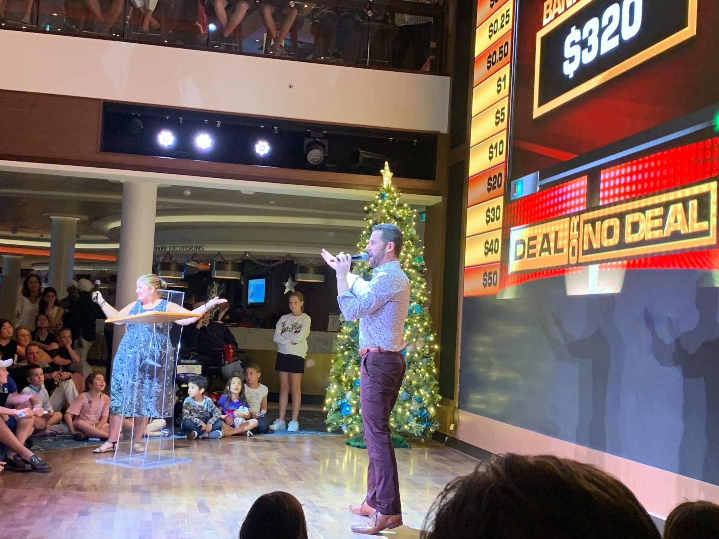 Audience Participation games & gambling! Of course, they have the typical "Newleywed Game" and "Quest" type of games, lots of fun to watch or to participate in..they also offer Bingo and the newest game to make it's debut on cruise ships is "Deal or No Deal". You buy cards and play along