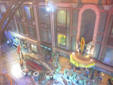 (BELOW you can see our cabin and the view we had of the Royal Promenade)