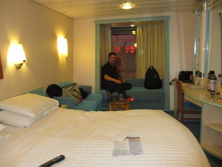 The cabin itself was to be expected- decent size for a cruise ship.  Our configuration was walk in to the bed first and then the sitting area was close to the window- but decent amount of sitting area with a bench couch under the window and then another little loveseat. We don't spend a ton of time in our cabins other than to sleep or get ready, so we never found that we didn't have enough space.  Of course, with a balcony and the natural daylight coming in- you always feel as though the space is larger.    I do love that Royal Caribbean has shower doors vs. a shower curtain.  It always creeps me out with the curtains because the showers are so small and the curtains are always clinging to your body- the doors just seem cleaner to me.  Our bed was comfortable and there was plenty of closet space; although we could have used more drawer space.  Again, we managed and quite honestly had more clothes than needed.  I suspect if we packed appropriately, there was enough space for everything.