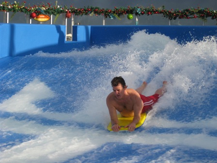 The Sports Complex area consists of rock climbing walls, basketball court, Flow-Rider, surf simulators and a zip-line that zips you over the Boardwalk area. The Zip-line was not as long or big as I had expected from the renderings…but still a very cool experience.
