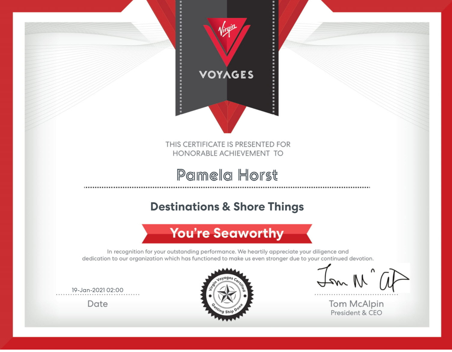 I am proud to be an Elite Cruise Counsellor (ECC), designated by the Cruise Line International Association. I am also a Certified Travel Associate (CTA), designated by the Travel Institute.