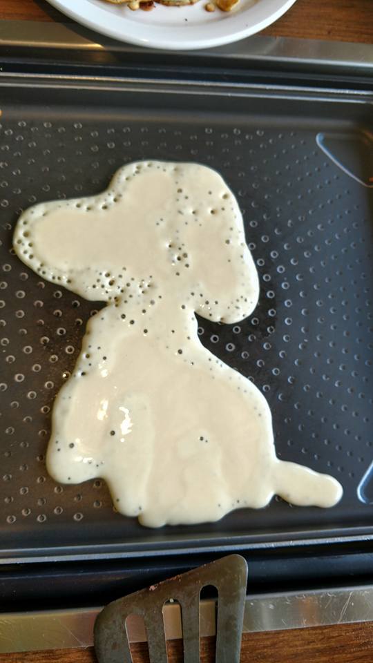 Overall, our stay in Maui was low key. I did visit clients at the Fairmont Kea Lani for lunch at Ama, which was very good and the clients were very impressed with the resort. I also toured the Four Seasons Maui & had a snack at the poolside restaurant called Ferraros. We had pizza & it was delicious. Great & friendly service from the bar staff. That evening we met a friend for dinner at Ko, located at the Fairmont. We were treated wonderfully & had a very filling & tasty meal. Another morning, we checked out a favorite of my family clients, Slappy Cakes. This was walking distance from the Honua Kai. They serve breakfast only from 6am to 2pm daily. Each table has their own griddle & you can make your own pancakes or you can just order from the menu. I had to give it a try & made my Snoopy pancake.