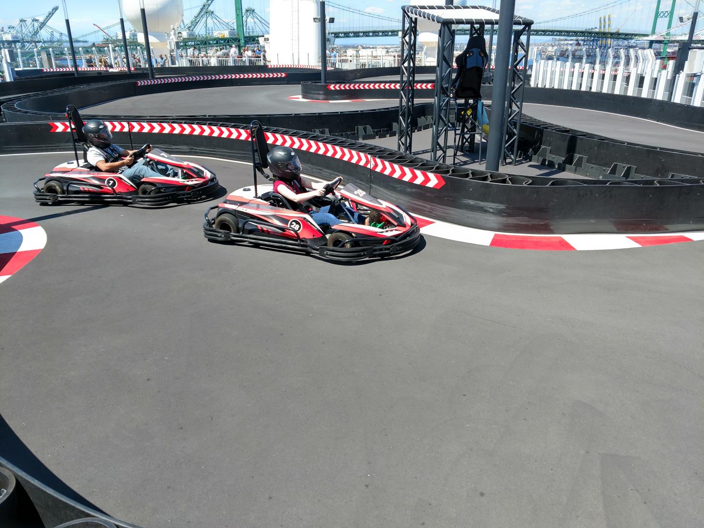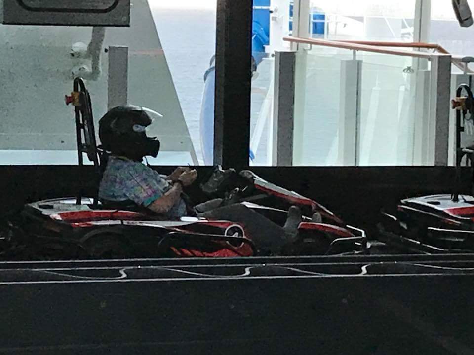 The ship has water slides, laser tag, race car track, Country Music dedicated club (also is a BBQ restaurant before the music starts). All sorts of restaurants, you will never go hungry or get bored with food choices as there are plenty! Our friend Pat tried the race cars and had a blast! We had reservations for the same time, but it was 730pm, we were already dressed for the evening so we just didn't want to deal with having to change into more appropriate clothing, etc.