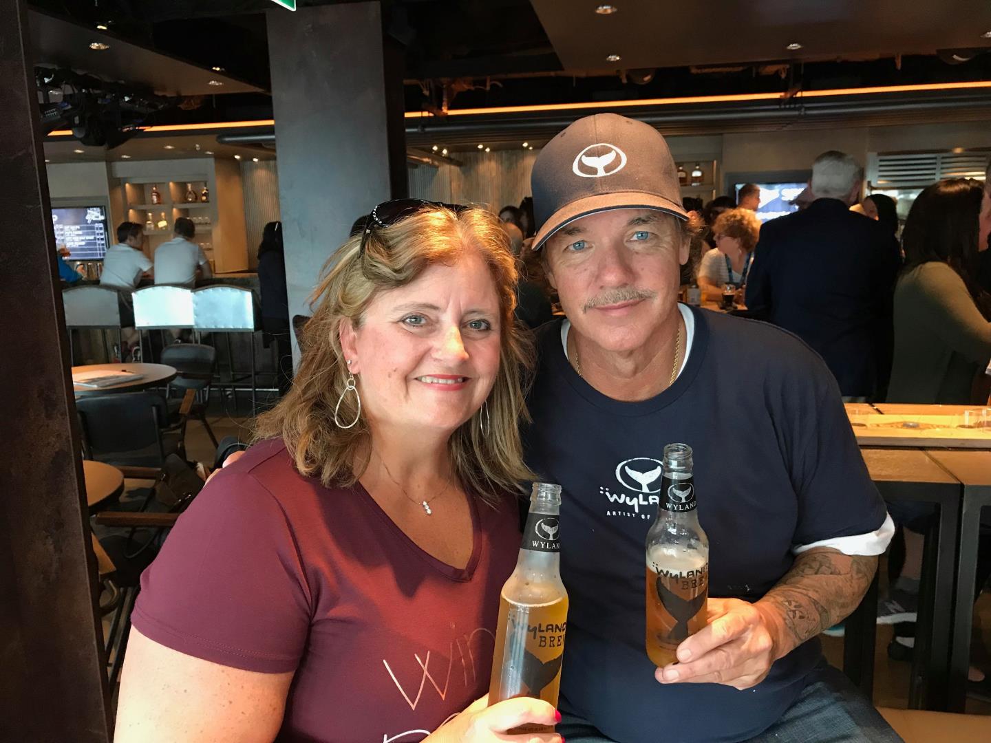 This ship's hull has been painted by the well known artist "Wyland", the ship's hull is beautiful. Well, he was on board for this sailing and we had the honor to meet him & also watch him paint! He painted a brand new canvas while everyone watched over the course of about 2 hours, it was amazing to watch. Afterwards, he was in the Pub to launch his new beer "Wyland Brew", they were giving out bottles for free & he was there for photos and autographs, we were lucky to get both from him. We all drank one of his beers too. I'm not a beer drinker, but it was good!