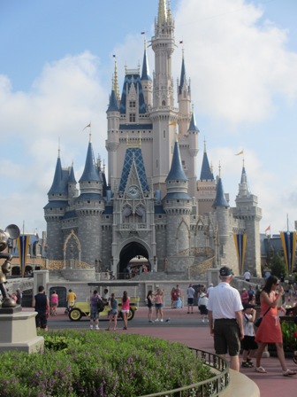 Our second day we spent at Disney's Magic Kingdom.  I still believe that Cinderella's Castle is so much prettier than Sleeping Beauty's Castle.  Of course the Castle leads you to Fantasyland and this Fantasyland has gone through a major renovation since 2010.  Given that I don't travel to the Magic Kingdom that often, I knew things had changed, but it was hard for me to really feel the change in the layout until I spoke to a cast member and she explained how some existing attractions had been moved completely.  A few notable changes:  there is now a new area "The Enchanted Forest" set up as  Belle's Village from Beauty and the Beast with one attraction and a dining experience.  We stood in line for the attraction "Enchanted Tales with Belle", which was an inter-active version of story telling and it was quite nice and for any little girls wanting to meet Belle up close and personal- this is the place to do it.  I recommend that kids be sure to volunteer to be part of the story as they will get some extra special attention from Belle.