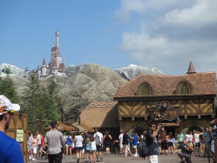The "Be our Guest" restaurant is set up in the middle of the Beast's castle. We didn't have time to dine here, but I'm sure given all the new innovations it would have been wonderful. We did pick up breakfast though in the village at Gaston's Tavern and had a humongous Cinnamon Roll that was delicious! Additionally, the Enchanted Forest includes "Under the Sea- Journey of the Little Mermaid" which is just like the one we have at California Adventure and then "Ariel's Grotto"- a place to take pictures and autographs.
