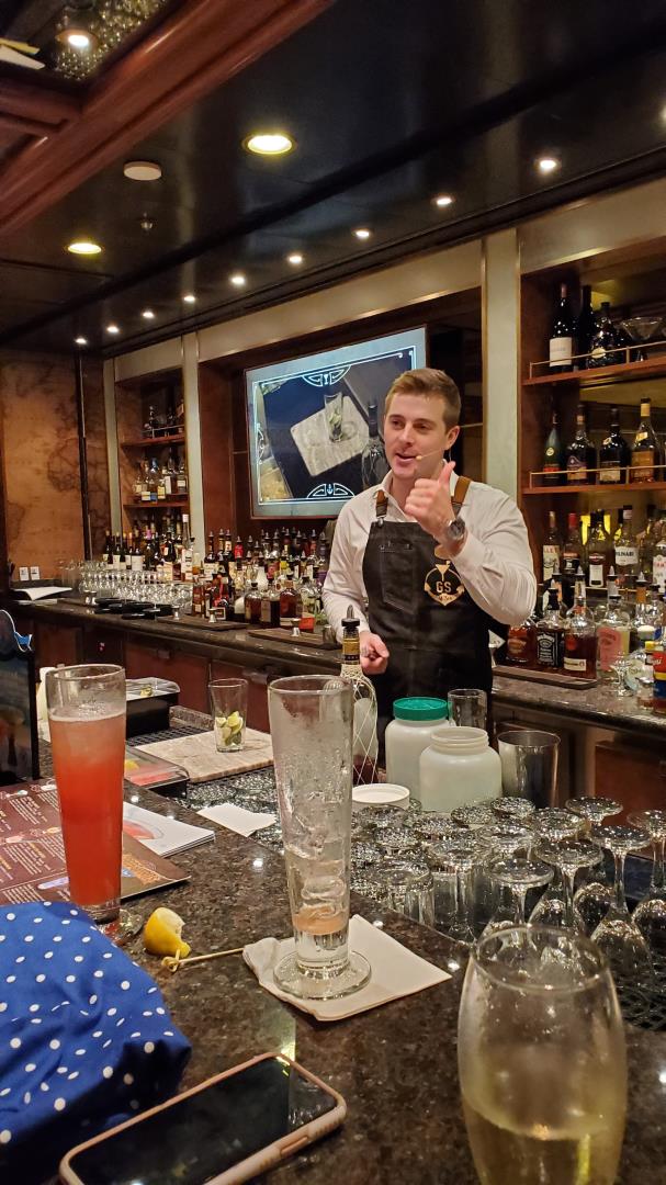 We would visit our friends at the Piazza Bar, where they would have periodic shows on making various drinks.  If someone ordered off the "special" menu, they would then do a step by step demo of how to make that drink.  It really was fascniating to watch  Ryan, who was the lead bartender at this bar.  He was very passionate about the flavors that go into the drinks & shared a lot of interesting factoids.   This is where I got hooked on the Chocolate Martini!  So delicious!   I made sure to write down the recipe so I can make these at home, though I've been home for 5 months and have not made one yet!