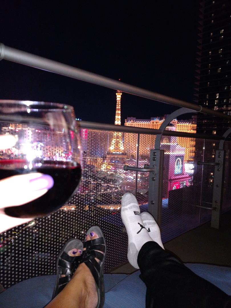 We arrived Thursday evening and checked in to our room, had a late dinner at the hotel in the equivalent of their coffee shop/pub and decided to enjoy the view from our balcony with a bottle of wine. This is one of my favorite things about the Cosmopolitan, many of their rooms feature balconies and we had a Bellagio fountain view- we sat outside, weather was gorgeous and just watched the fountain show over and over again.